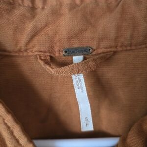 Free People Poet Puff Sleeve Bomber Jacket Size Small Oversized Linen Orange