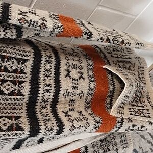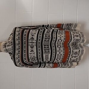 Free People Poof! Large Cotton Blend Open Front Long Cardigan Sweater Jacquard