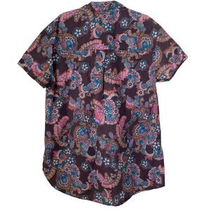 Free People Poolside Printed Boyfriend Shirt M Purple Paisley Floral Oversized
