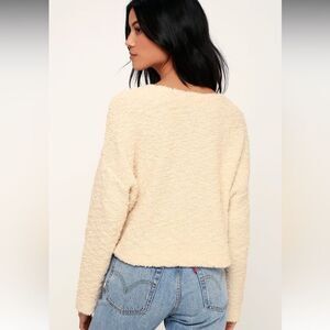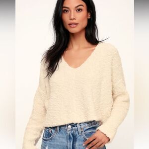 Free People Popcorn V Neck Pullover Sweater Ivory Women's Large Boho Fall Teddy
