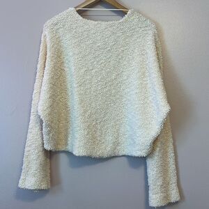 Free People Popcorn V Neck Pullover Cropped Sweater Ivory Womens Large Oversized