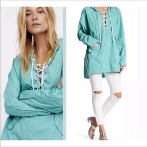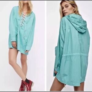 Free People Poplin Hooded Pullover in Sky XS/S NEW