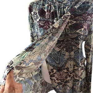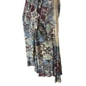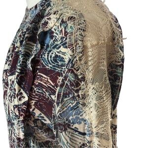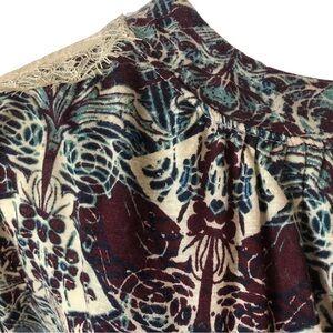 Free People Popover Top Women L Off White Blue Maroon Ecru Eyelash Lace Inset