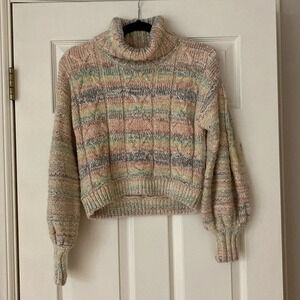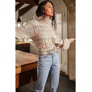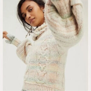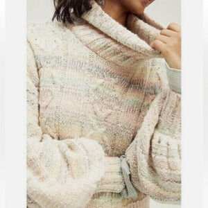 A cool and classic essential, this pullover sweater is featured in a turtleneck silhouette with cable-knit detailing and exaggerated sleeves for added shape.