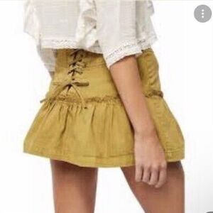 Free People Postiano Skirt Size 12 Mustard Lace-Up Tie Back Mini Short