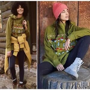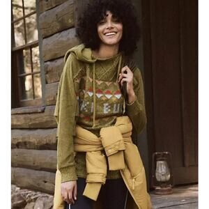 Free People Powder Bunny Sweater Ski Bum Fair Isle Chunky Knit Hooded Oversized