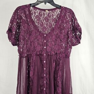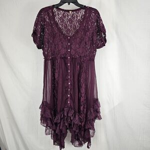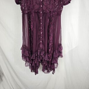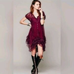 Free People Praire Ruffled Dress In Burgundy Lace Women's Size Large No Slip