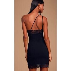 Intimately Free People Premonition One-Shoulder Bodycon Slip Mini Dress in Black OB1031310, Size XS. New with tag. First 9 photos are stock photos to show fit and detail only.