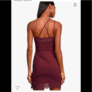 Free People Premonitions Burgundy Lace One-Shoulder Bodycon Slip Dre NWT. XS