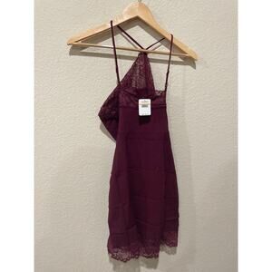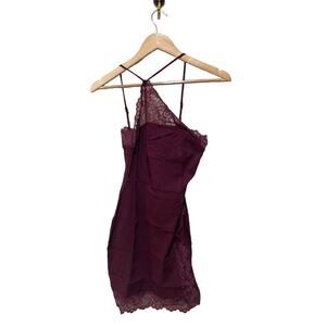 Free People Premonitions Lace Trim Bodycon Dress in Burgundy Size Small