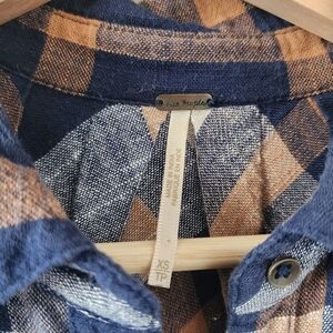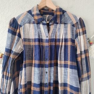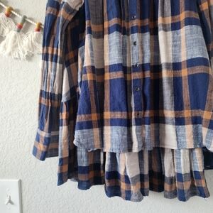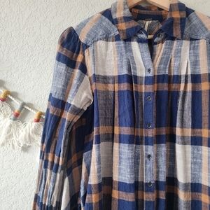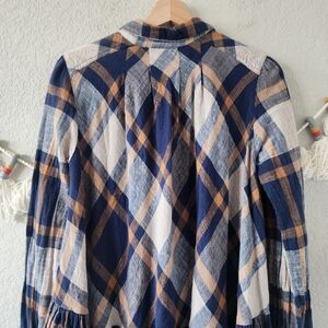 Free People Preppy In Plaid Oversize High Low Flowy Button Down Top Academia XS