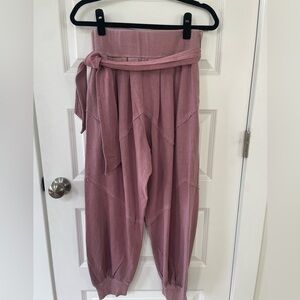 Elastic waistband measures about 13.5” across. They stretch out to much wider. They’re very high waisted.