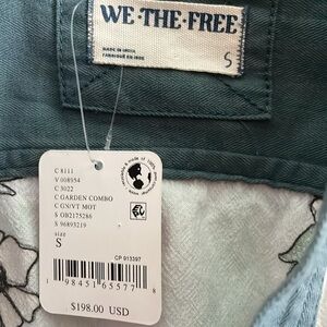Utility meets whimsy with this boxy kimono-style layer from We The Free, featured in a crisp cotton poplin with tie-front details and playful prints bodice, finished with chain-stitched florals for a fun touch.
