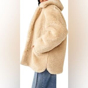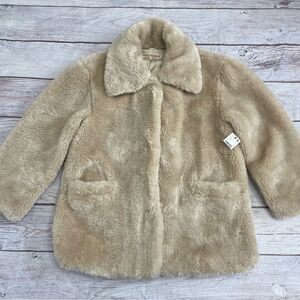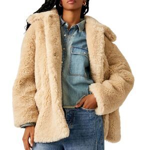 Free People Pretty Perfect Faux Fur Peacoat Tea Size Large NEW with tags