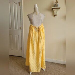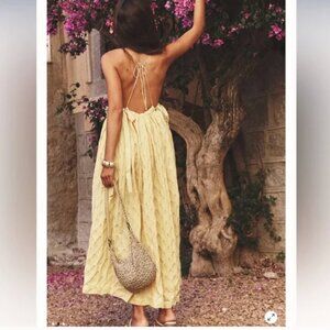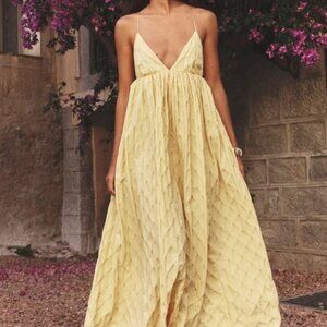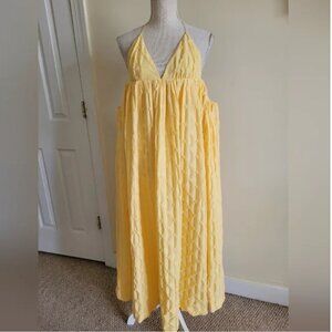 Free People Primmy Textured Triangle Midi Yellow Dress size L