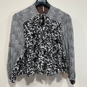 Free People Print Open Cardigan Jacket Tie Top Size XS Unique Musician Boho