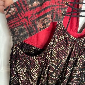 Free People Printed Cotton Noyale Heat Wave Summer Tunic Dress Summer Red M