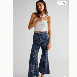 Free People Printed Crop Flare Jeans High Rise Denim Ankle Blue We The Free