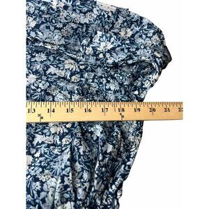 Free People Printed Daybreak Chambray Combo Blouse Floral Ruffled Cotton Small
