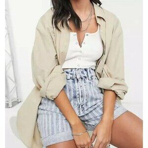 Solidify your casual-cool game in these cleverly striped high-waist shorts punctuated with easy cuffed hems. Zip fly with hook-and-bar closure Front scope pockets; back patch pockets 62% Cotton, 38% Lyocell