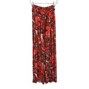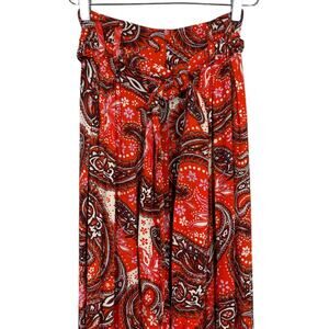 Free People Printed Double Trouble Pants XS Red Wide Leg Paisley Boho Retro