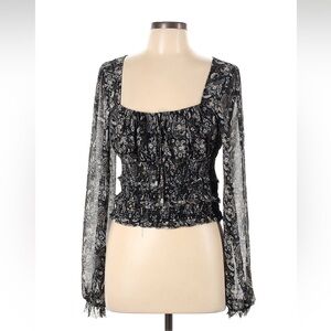 A romantic blouse with a retro-inspired silhouette. This floral-print Free People crop top is finished with sweet smocking and ruffles—and looks just as good with jeans as it does with dressier options