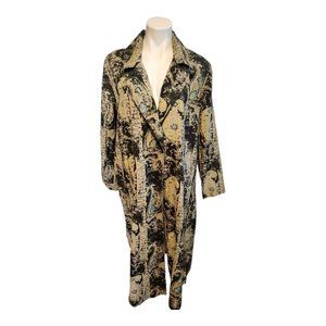 Free People Printed Maxi Duster Women's Oversize Medium Pockets Black/Tan New