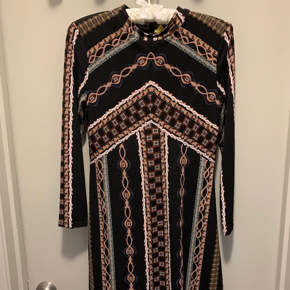 Free People Printed Mini Dress. In Excellent Condition! Long Sleeves. Back Zipper. Super cute with over the knee boots!