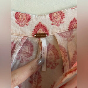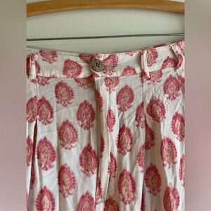 Free People Printed Red/Orange/Pink and Cream Linen Like Trousers