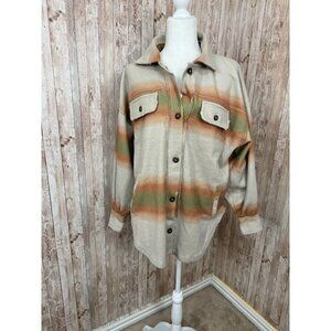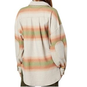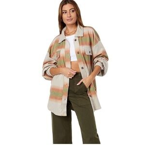 Free People Printed Ruby Shacket Long Sleeve Distressed Mazipan Combo XS