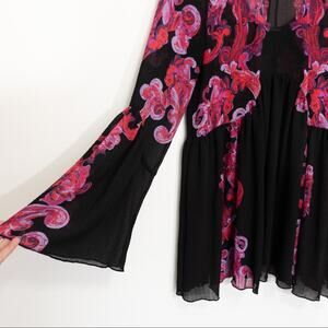 Free People Printed Symphony Sheer Slip Tunic Paisley Bell Sleeve Dress