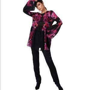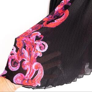 Intimately Free People Printed Symphony Slip Tunic Dress Sz XS Black Pink Boho Semi sheer lightweight fabric