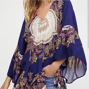 Free People Printed Tunic V-Neck High Low Mandala Shirt Top Size M