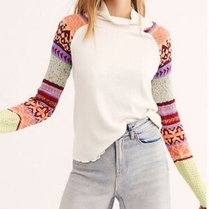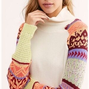 Free People Prism Fair Isle Sweater Knit Sleeves