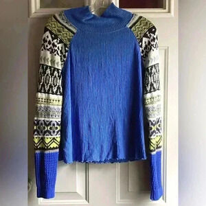 Free People Prism Sweater Blue Bell Combo Size S/P Classic Ribbed Turtleneck