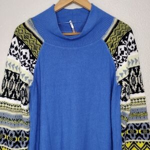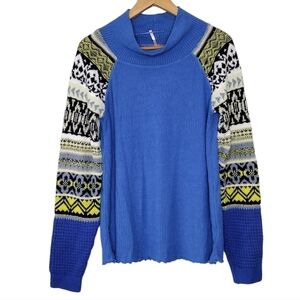 Free People Prism swit blue bell combo knit grannycore long sleeve sweater.