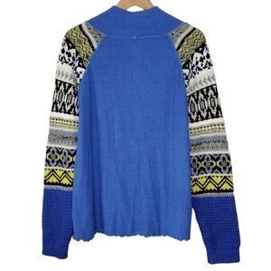 Free People Prism Swit Blue Bell Combo Knit Grannycore Long Sleeve Sweater