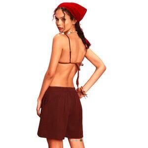 Free People Pucker Check Wrap Around Shorts Chocolate Fondant Multiple Sizes