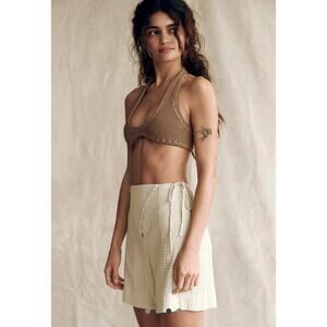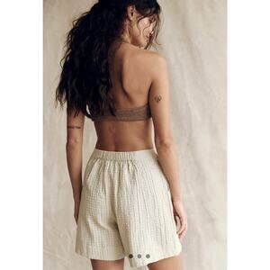 Free People Pucker Check Wrap Around Shorts Tie Waist Oatmeal S