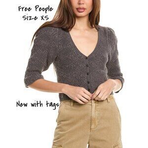 Free People Puff Sleeve Cropped Cardigan in Grey, Size XS - New With Tags