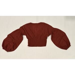 Free People Puff Sleeve Deep V Boho Crop Top Size M Medium Smocked Back🌺