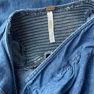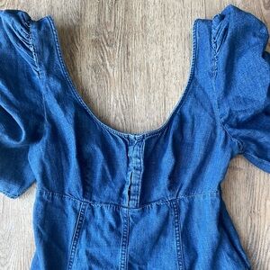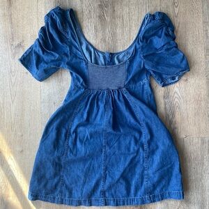 Free People Puff Sleeve Denim Mini Dress Blue Scoop boho Smocked Cottagecore S