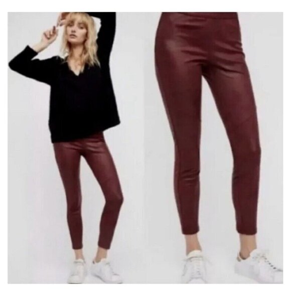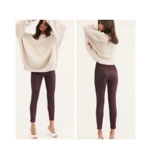 Free People Pull on Vegan Faux Suede Leather Leggings Wine Color Size M/L (N)