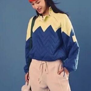 Free People Pullover Zig Zag Dandelion Combo medium quilted toggle NEW