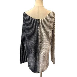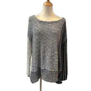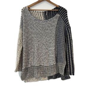 Free People Pullover Sweater Blue Grey Medium Patchwork Oversized Slouchy