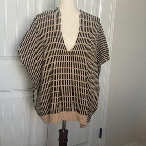 Beautiful Free People Short sleeve, v-neck, pullover sweater with an exposed back zipper. Poncho-like fit.