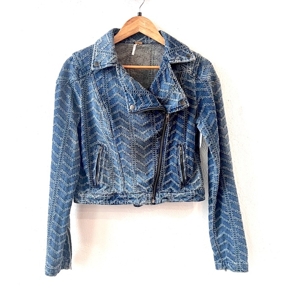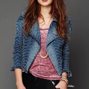 Free People Punched Denim Moto Jacket.