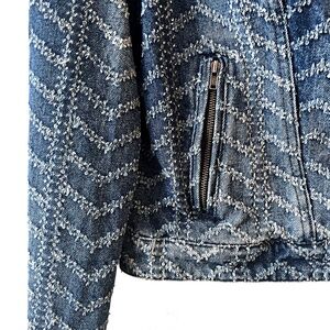 Free People Punched Denim Moto Jacket in Chevy Blue Chevron