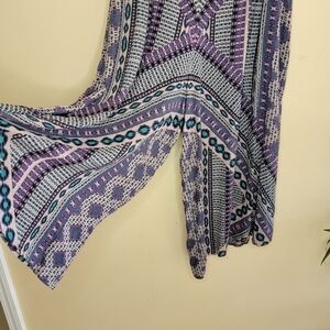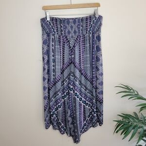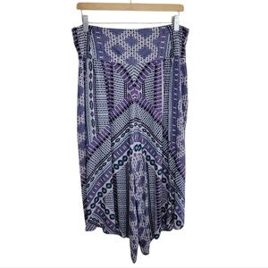 Free People | Purple Aztec Geometric Print Cropped Asymmetrical Hem Harem Pants