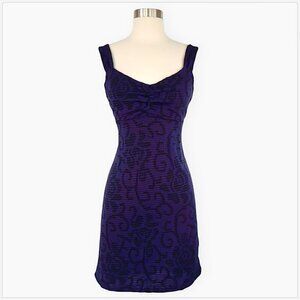 Free People Purple Black Floral Textured Stretch Knit Empire Sleeveless Dress L